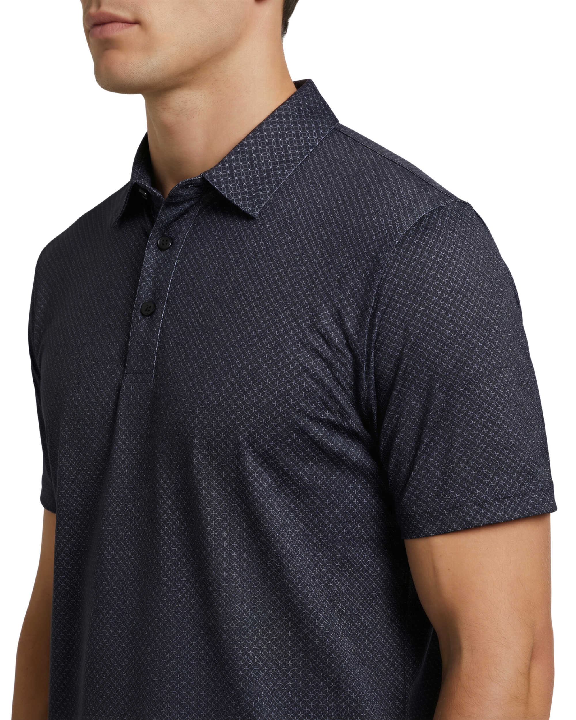 Geometric Print Stretch Knit Golf Polo Shirt