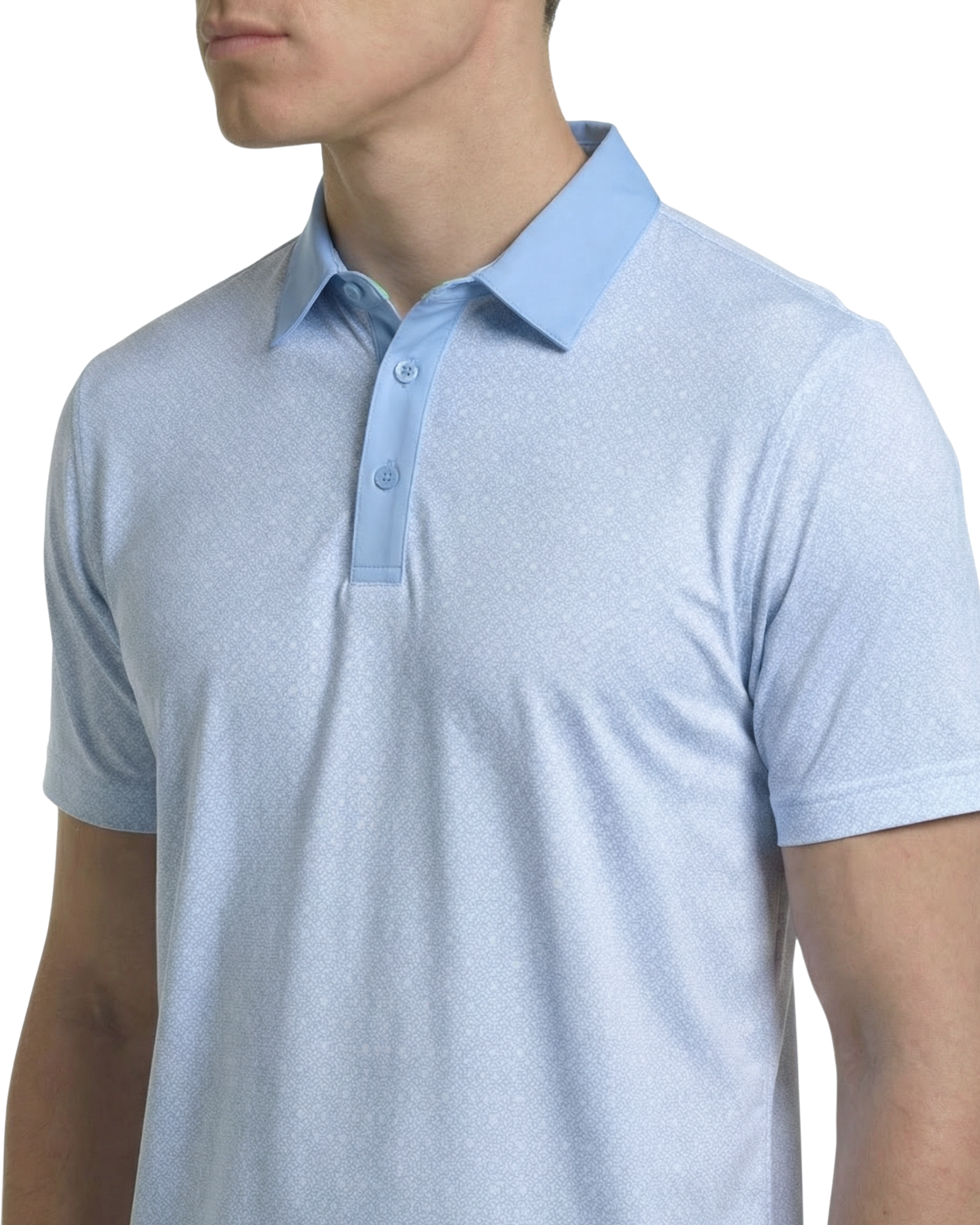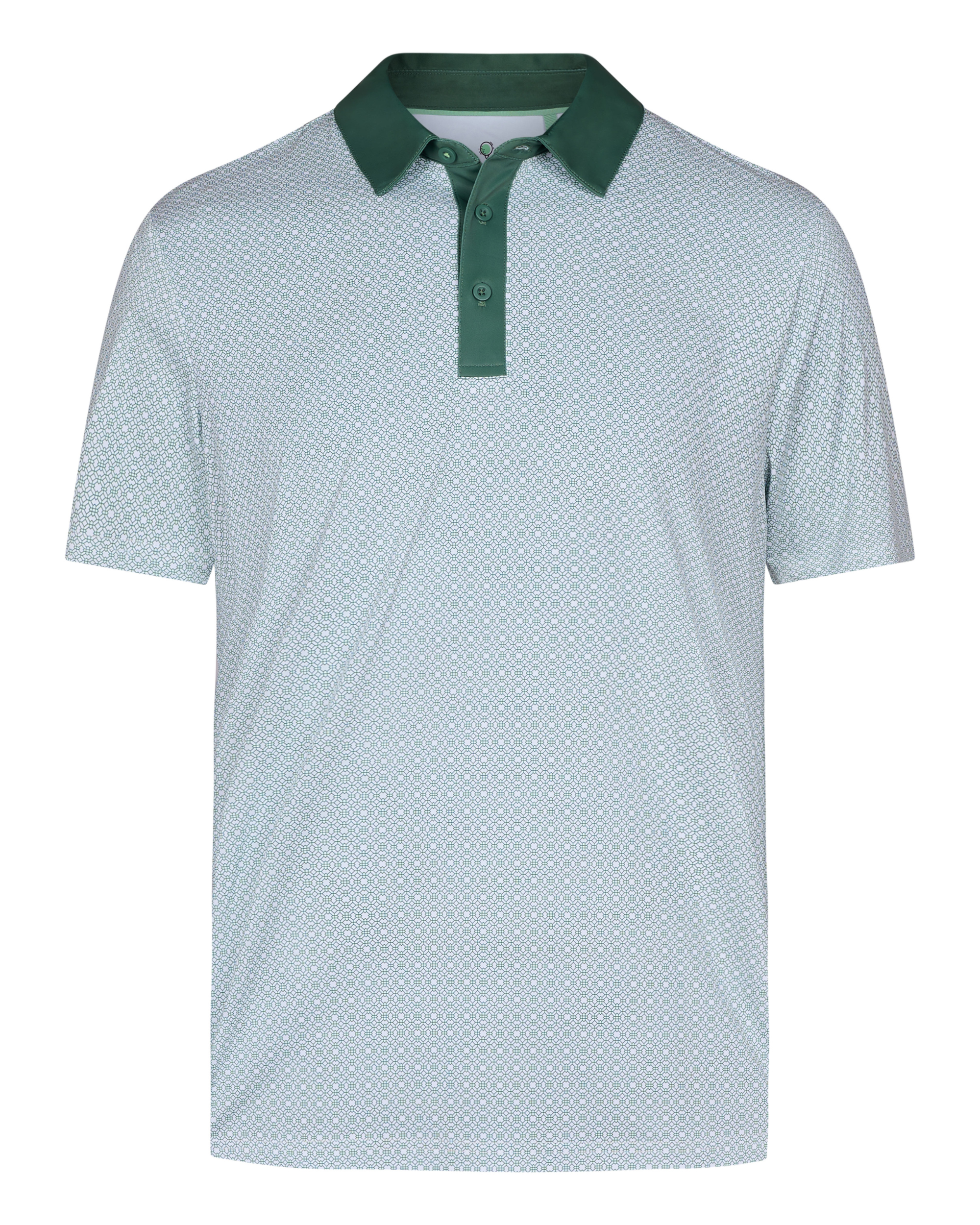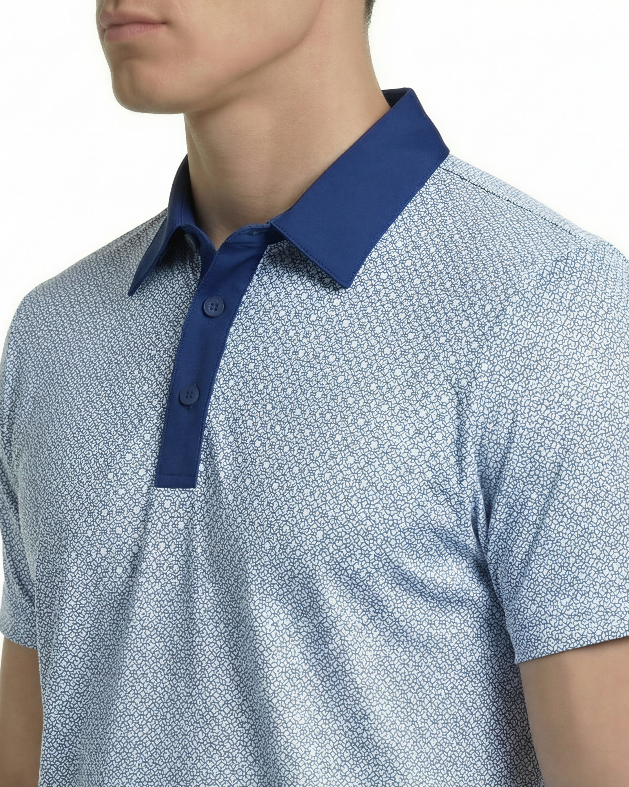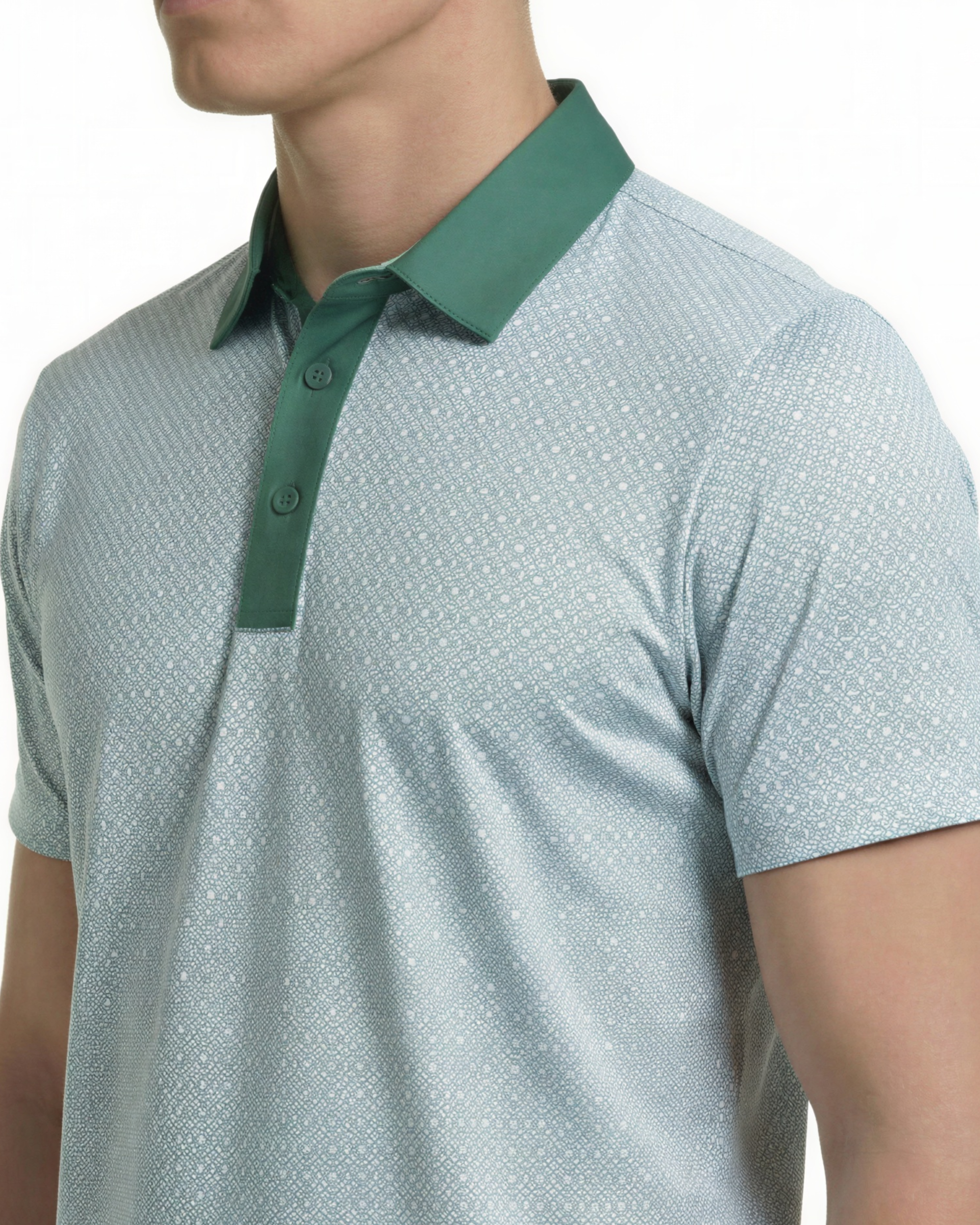 Micro Geometric Pattern Stretch Knit Golf Polo Shirt