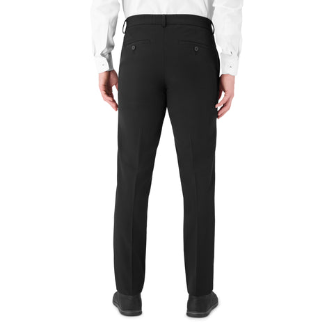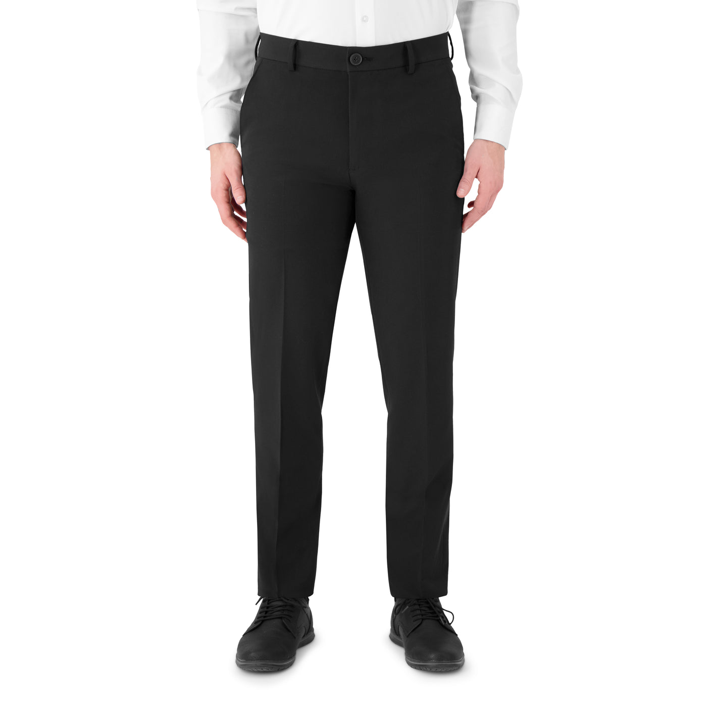 These men’s dress pants are crafted from a smooth performance woven fabric designed to deliver comfort, flexibility, and a polished appearance. Featuring a clean front with button-and-zip closure, belt loops, and an elastic comfort waistband, they provide a secure yet flexible fit throughout the day. The straight-leg silhouette offers a refined profile suitable for office wear, formal settings, or elevated everyday styling. The polyester-rayon-spandex blend combines durability, softness, and stretch for reliable all-day performance.