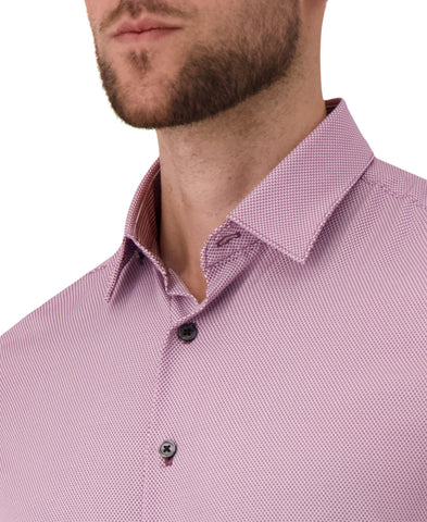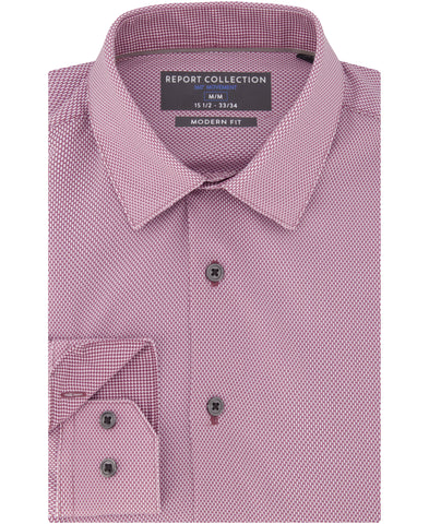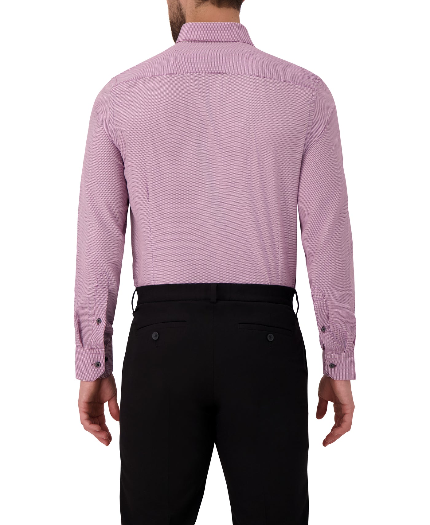 This men’s long sleeve dress shirt features a crisp vertical stripe print that delivers a sharp, elongated look suitable for both professional and elevated everyday wear. Designed with a pointed collar, long sleeves featuring buttoned cuffs, and a full-button front closure, it creates a clean, tailored silhouette. The 4-way stretch woven fabric offers superior flexibility and comfort while maintaining a smooth, structured finish throughout the day. A modern fit ensures a polished appearance, whether worn tucked in for work or styled more casually.