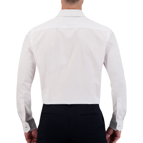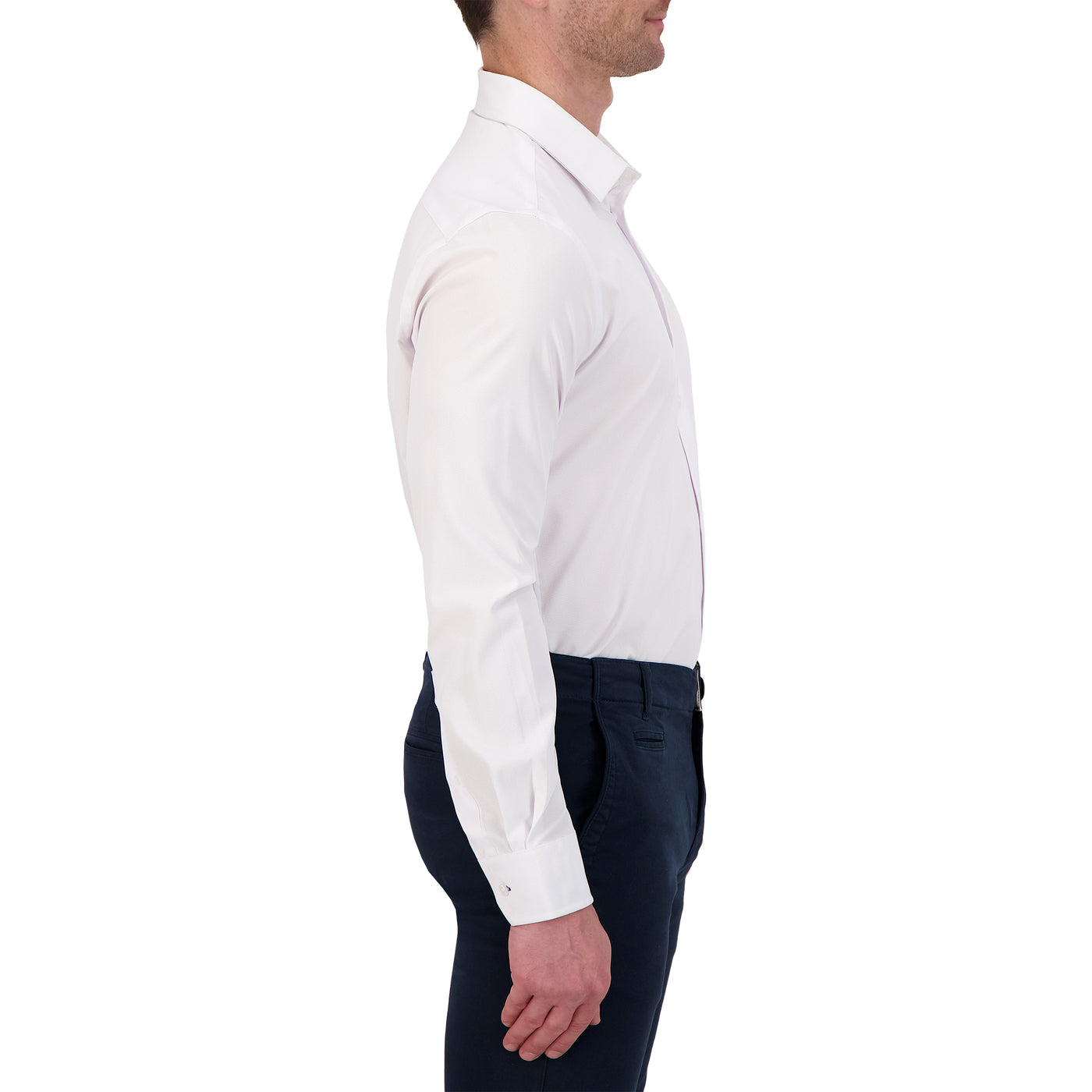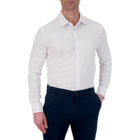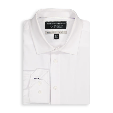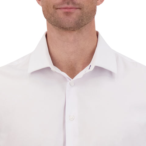Men’s 4-Way Stretch Performance Dress Shirt With Herringbone Texture - White / REG / 14.5