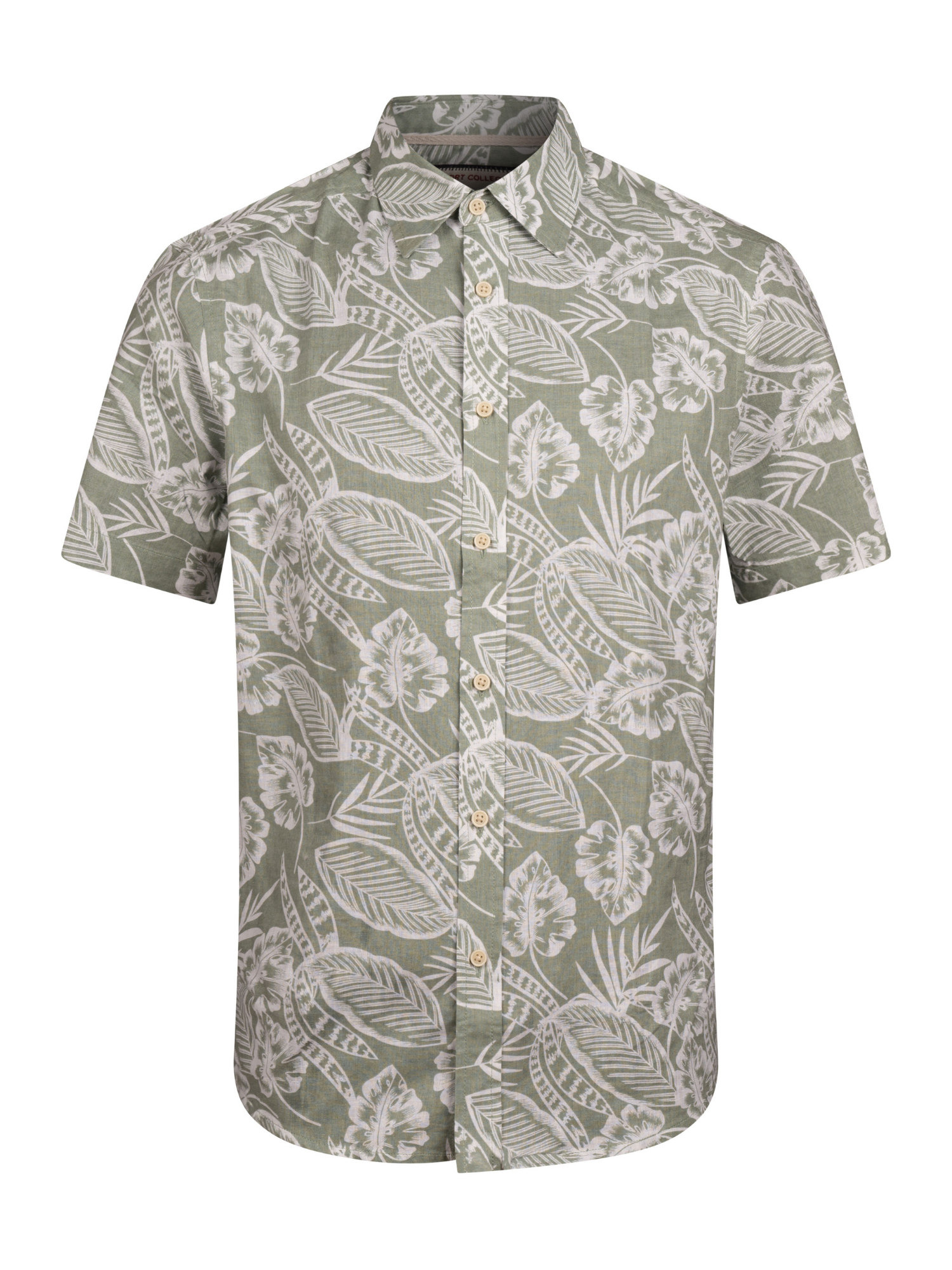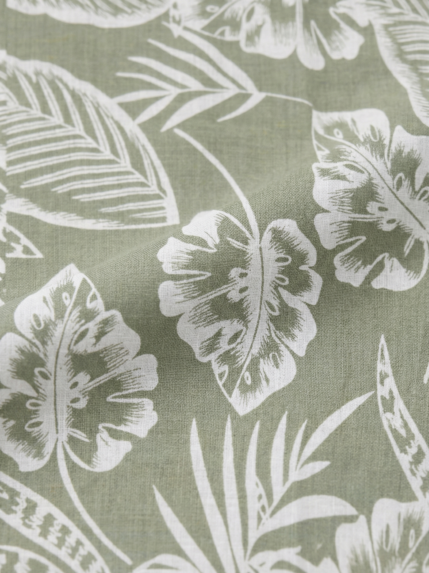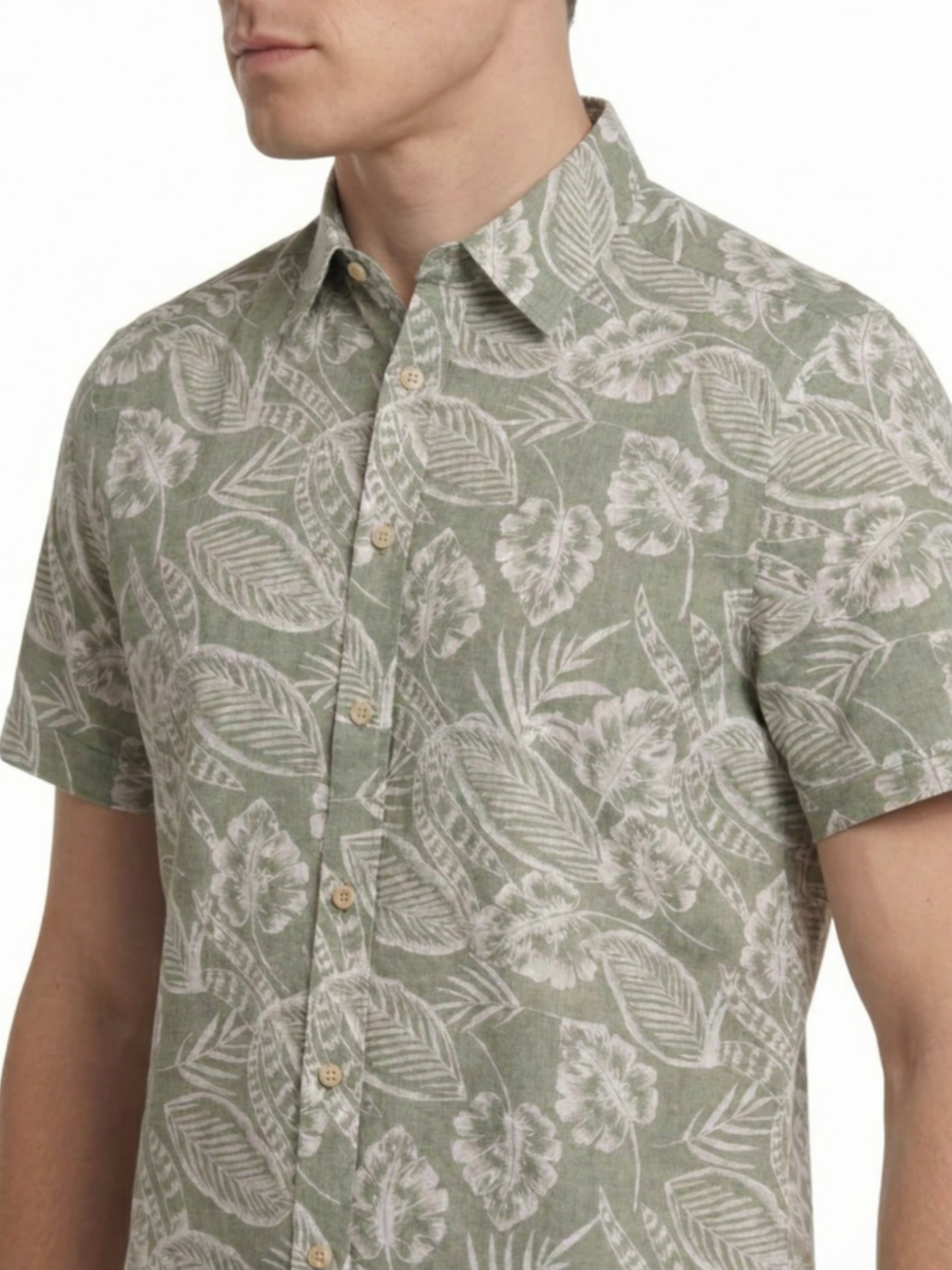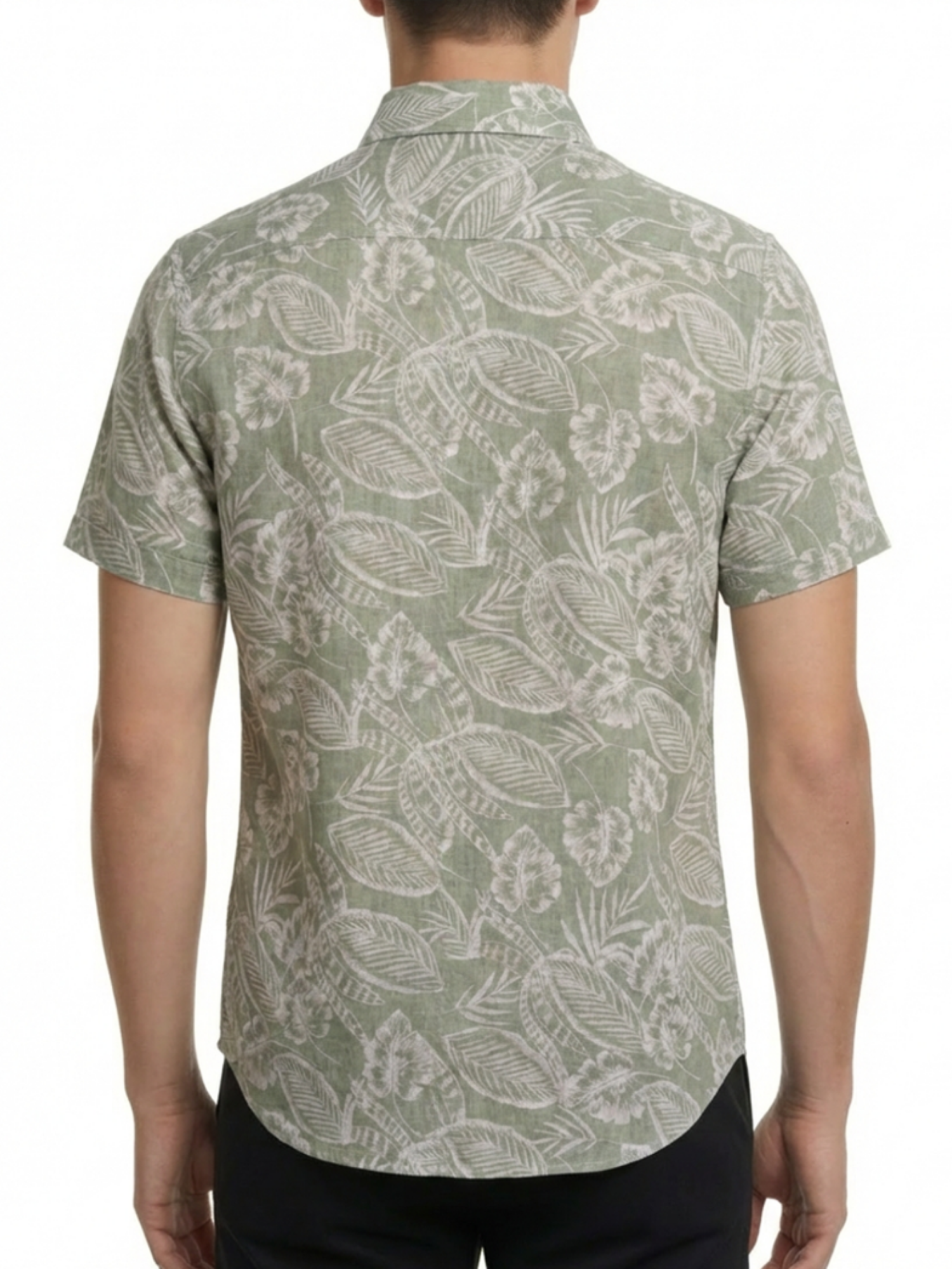 Tropical Print Linen Cotton Short Sleeve Shirt