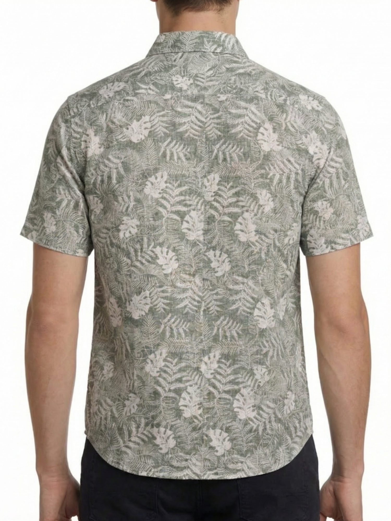 Tropical Print Linen Cotton Short Sleeve Shirt